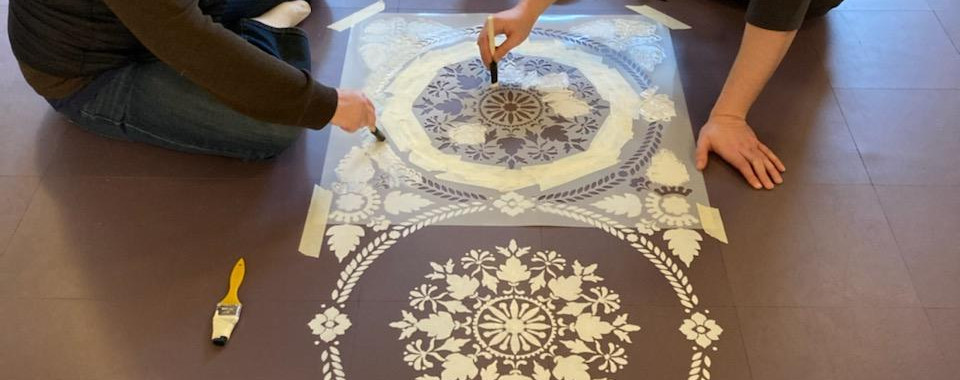 We were very lucky to have help with the time-consuming task of hand stenciling the floor! It came out better than we could have hoped and seeing the finished product is very satisfying!